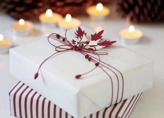 Luxury wrapping paper, personalised bow, embellishments, ornaments and a name tag.